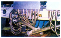 在泵或壓縮機與閥門、儀器儀表所構成的輸送液、氣介質的管道系統中,常因振動損壞儀器儀表,縮短元器件的使用壽命,影響系統的正常工作,還因振動產生的噪音嚴重危害操作者的健康。所以在泵的進出口安裝一節泵連軟管可減小、吸收管系統的振動和噪音,同時還能補償一定的位移,保護了系統正常工作,靜化工作環境,并消除了以往采用的橡膠軟接容易老化,耐溫性能差等常見病。