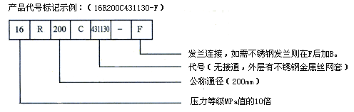 表示說明:1.6公斤級、通徑為200mm,法蘭(碳鋼)連接的泵連軟管。